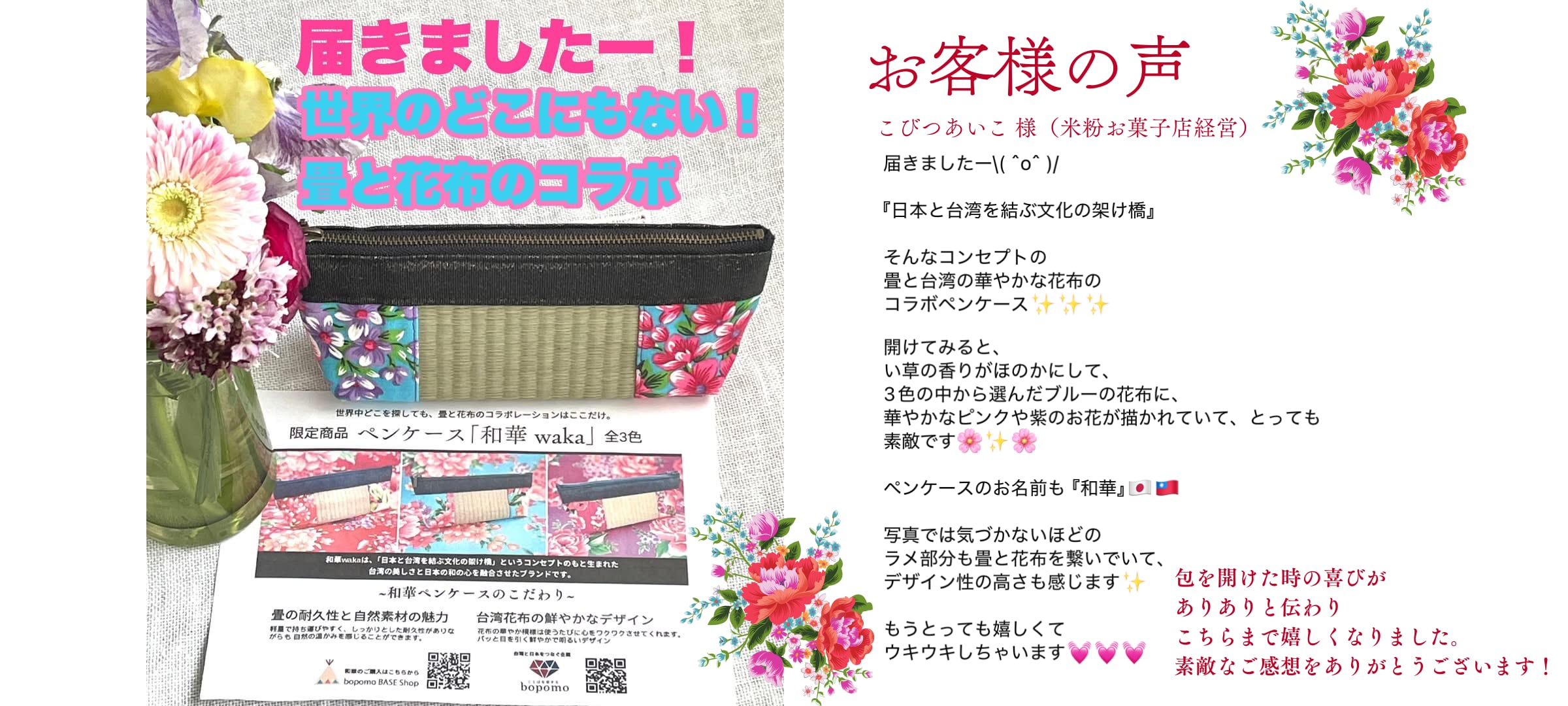 ■ カラー:青 ■ サイズ:W21 x H8.5 x D4.5(㎝) ■ 個数:限定個数(以降春までに入荷予定) ■ 製造国:日本 ■ 発送・注文に関する情報や注意事項: ご注文後、通常5日以内に発送いたします。入荷状況によっては発送までお時間をいただく場合がございますので、ご了承ください。 ■ お手入れ方法: 汚れた箇所を硬く絞った布で優しく拭き取って下さい。直射日光を当てますと変色や劣化の原因になります。 ■ その他の情報や注意事項 一つ一つが職人による手作りのため商品の色合いや柄が少しずつ異なります。あらかじめご了承ください。 ご質問やご不明点がある場合は、ショップのお問い合わせからお気軽にお知らせください。 ********************************* 和華waka 〜台湾の美しさと和の心を持ち歩く〜 古き良き日本の文化と、台湾の伝統が交わる瞬間、一体どんな化学反応が起こるのだろうか。和華wakaは、そんな「日本と台湾を結ぶ文化の架け橋」というコンセプトのもと生まれた台湾の美しさと日本の和の心を融合させたブランドです。 この企画には、松葉商店様の協力を得て実現した特別な背景があります。 和と華が調和する、心ときめくひと品をあなたに贈ります。 【和華ペンケースのこだわり】 和華ペンケースは、美しさだけでなく、実用性も兼ね備えています。 ★畳の耐久性と自然素材の魅力 軽量で持ち運びやすく、しっかりとした耐久性がありながらも自然の温かみを感じることができます。畳のイ草の香りは主にフィトンチッド、ジヒドロアクチニジオリドなどが含まれています。 フィトンチッドという成分は、アロマテラピーの代表的な芳香成分としても知られており、いわゆる「森林の香り」です。 フィトンチッドは、強力な消臭・脱臭効果、殺菌効果、ストレスホルモンの減少、ガンを防ぐNK細胞の活性化など、様々な効果があります。子どもたちに触れられても安心な素材は、家庭を持つ女性にも嬉しいポイントです。 また、ファスナー部分は畳の縁に使用する素材を使用。丈夫な素材なのでファスナーの開閉もスムーズです。 ★台湾花布の鮮やかなデザイン 花布の華やか模様は使うたびに女性の心をワクワクさせてくれます。 パッと目を引く鮮やかで明るいデザインは、そっと置くだけで注目の的。慌ただしい準備の中でもバッグの中で迷子になることもありません。 ファスナー部分の黒い縁も、花柄の華やかさに合わせラメが上品に光る素材を起用いたしました。こちらのぜひ目で楽しんでいただきたいです。 ★ペンケースとしての実用性 複数のペンが収納可能、付箋も収納できる高さで開閉しやすい設計。 お子様の学校行事や仕事の打ち合わせなど、さまざまなシーンで使いやすさを実感できます。 大切な人へのギフトとしても最適です。 台湾と日本、二つの文化の美しさを感じる「小さな贅沢」を、ぜひご体感ください。